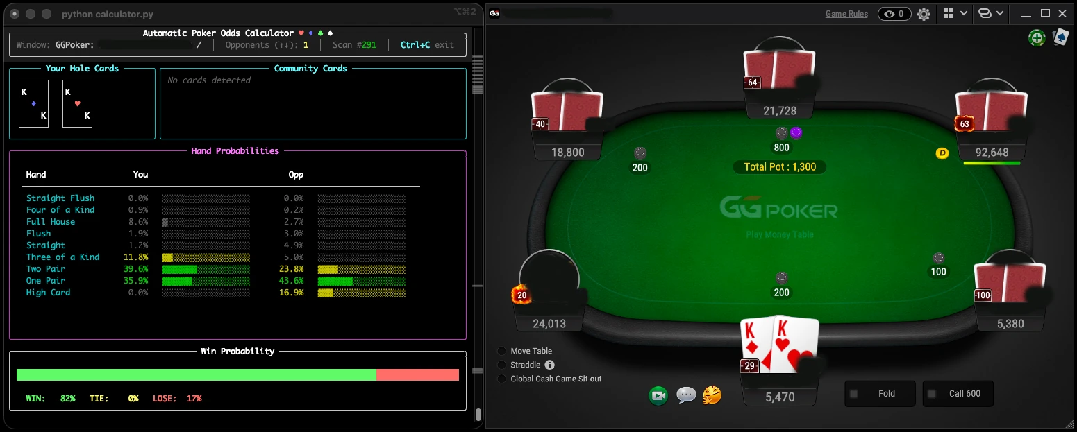 Introducing Automatic Poker Odds Calculator - the ultimate game-changer for poker players! Imagine having an intuitive tool that instantly detects every card on the table and calculates real-time probabilities of every hand, giving you the competitive edge you've always wanted. With Poker Odds Calculator, you'll enjoy: